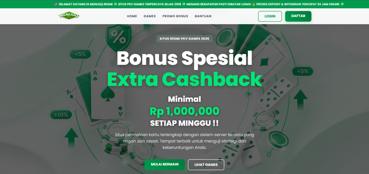 Menuqq memberikan akses langsung ke peluang kemenangan tertinggi melalui proses daftar pkv games yang sangat ringkas, mudah, dan transparan bagi semua kalangan pemain. platform kami menjadi pilihan utama karena permainan populer seperti bandarqq dan domino99 memiliki persentase kemenangan atau winrate yang jauh lebih tinggi dibandingkan kompetitor lain yang ada di pasaran saat ini. bagi para pemburu keuntungan besar dalam waktu singkat, situs qq kami menyediakan potensi jackpot progresif yang sangat mudah didapatkan, khususnya pada meja dominoqq dengan perputaran permainan yang sangat cepat dan dinamis setiap detiknya. kami menyadari sepenuhnya bahwa kecepatan pencairan dana kemenangan adalah hak mutlak setiap pemain, sehingga sistem canggih kami memproses withdraw kemenangan dari meja bandarqq terbaik dalam hitungan menit saja tanpa adanya penundaan sedikitpun yang membosankan. selain itu, anda bisa menikmati variasi game lain seperti aduq, sakong, dan capsa susun cukup dengan menggunakan satu user id saja tanpa perlu repot memindahkan saldo antar dompet permainan.
